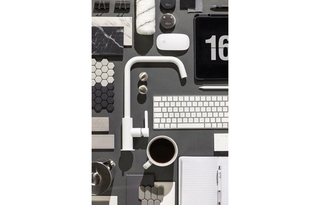 - A contemporary Abode Althia tap in matt white with a matt finish